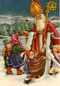 Очевидно, ця традиція зародилася в середньовічній Німеччині, де напередодні свята батьки презентували дітям новий зимовий одяг. З часом це почали робити таємно вночі, щоб діти вірили в чудеса Святого. Згодом почали також дарувати ласощі: горіхи, сухофрукти та особливі солодкі хлібці з сушеними грушами; шкільне приладдя, іграшки, які клали в нові чи начищені та відремонтовані старі черевики, які ставили поблизу камінів, чи в панчохи, які вішали на каміни. Діти вірили, що Святий саме через камін закидає в дім подарунки. Неслухняним дітям клали в’язку різок. Вважалося, що імена тих, хто гідний чи не гідний подарунка, записувалися в Золотій книзі, якою володів Святий Миколай. Діти також часто вірили, що Миколай приходить з осликом, який допомагає йому, тому вони клали поруч зі своїм взуттям моркву для нього. Вважалося, що віслюк веде свій рід від осла, на якому Ісус Христос святково в’їжджав до Єрусалиму напередодні Розп’яття.
