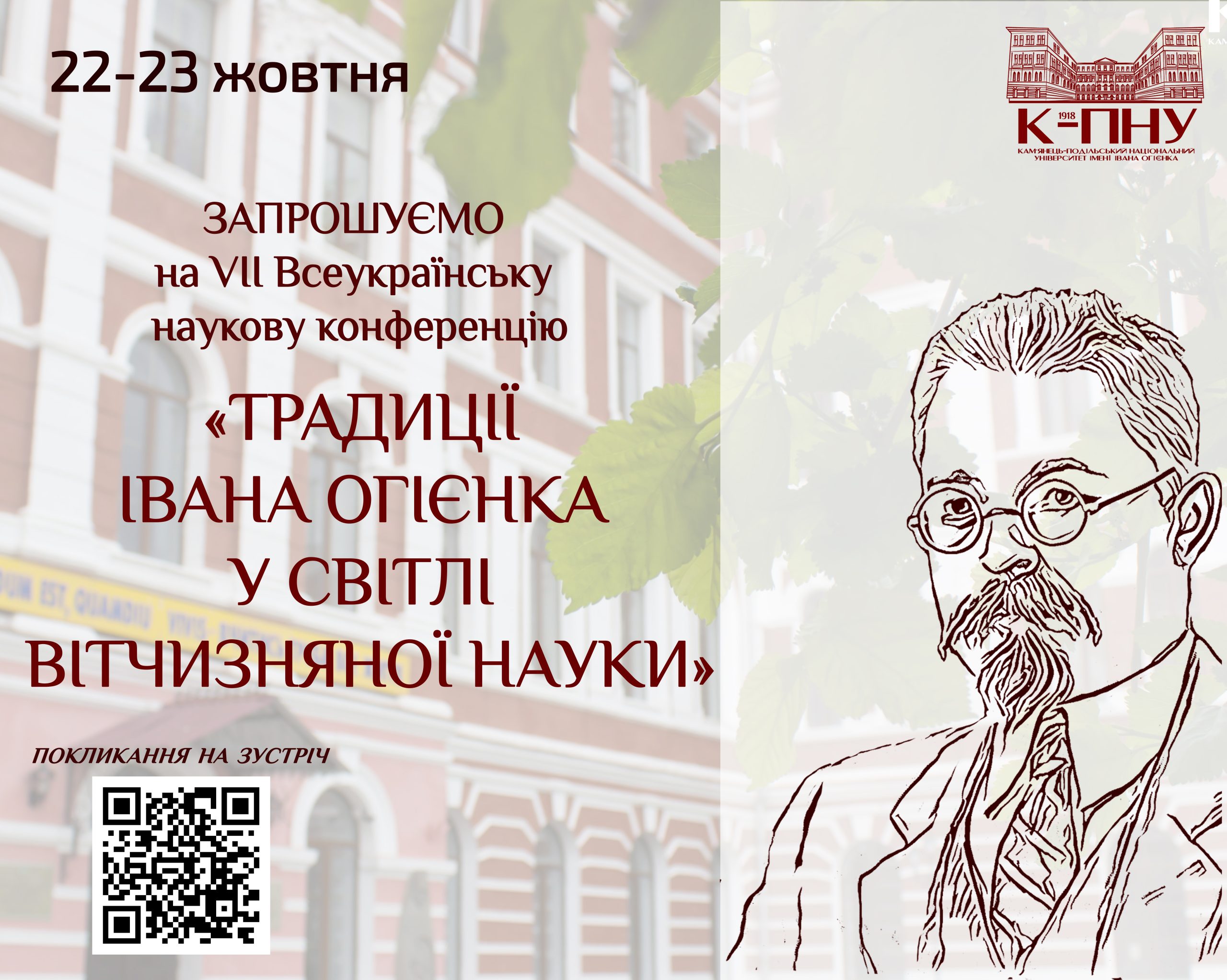 22-23 жовтня в змішаному форматі відбудеться VІI Всеукраїнська наукова конференція «Традиції Івана Огієнка у світлі вітчизняної науки».