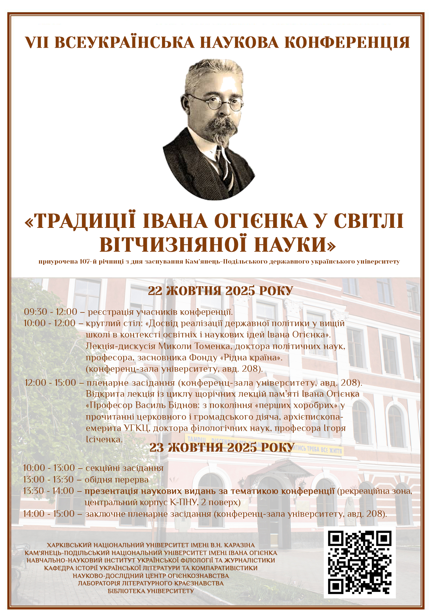 22-23 жовтня в змішаному форматі відбудеться VІI Всеукраїнська наукова конференція «Традиції Івана Огієнка у світлі вітчизняної науки».
